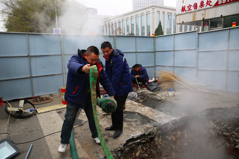 9日天一亮,安裝分公司會(huì )同新華西街供暖分公司關(guān)閉了附近的間斷閥,同時(shí)協(xié)調電廠(chǎng)降低流量,搶修人員迅速更換了一個(gè)DN50的絲頭和一個(gè)DN50的閥門(mén),直至中午11點(diǎn)半終于堵住漏點(diǎn),恢復了供熱。
